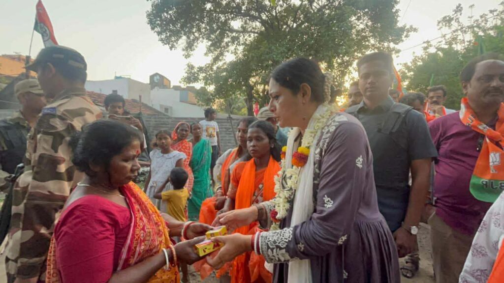আক্রমণাত্মক বক্তৃতার চেনা ছক থেকে বেরিয়ে সম্পূর্ণ ভিন্ন অবতারে ধরা দিলেন আসানসোল দক্ষিণের বিজেপি প্রার্থী অগ্নিমিত্রা পাল। সাধারণ মানুষের কাছে পৌঁছাতে তিনি বেছে নিলেন বাঙালির চিরন্তন আবেগ- সিঁদুর, আলতা ও লাল টিপ। বাড়ির দোরগোড়ায় দাঁড়িয়ে থাকা মহিলাদের কপালে তিনি নিজে হাতে পরিয়ে দিলেন লাল টিপ। কারও হাতে দিলেন আলতার ছোঁয়া, বয়োজ্যেষ্ঠদের মাথায় সিঁদুর ছুঁইয়ে নিলেন আশীর্বাদ।