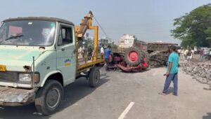 স্থানীয় সূত্রে জানা গেছে, আজ সকালে মঙ্গলপুর থেকে একটি ইট বোঝাই ট্রাক্টর দুর্গাপুরের দিকে যাচ্ছিল। সেই সময় ১৯ নম্বর জাতীয় সড়কে পিছন দিক থেকে আসা একটি কন্টেইনার সজোরে ট্রাক্টরটিকে ধাক্কা মারে। ধাক্কার তীব্রতায় ট্রাক্টরটি রাস্তার ওপরই উল্টে যায়।