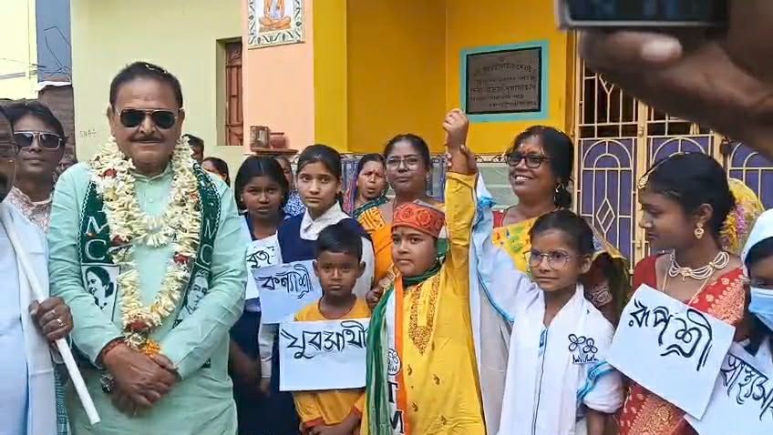 তৃণমূল প্রার্থীর প্রচারে প্রার্থীকে অভিভূত করার জন্যই ক্ষুদেদের এমন সাজ বলে জানা যায় স্থানীয় সূত্রে।