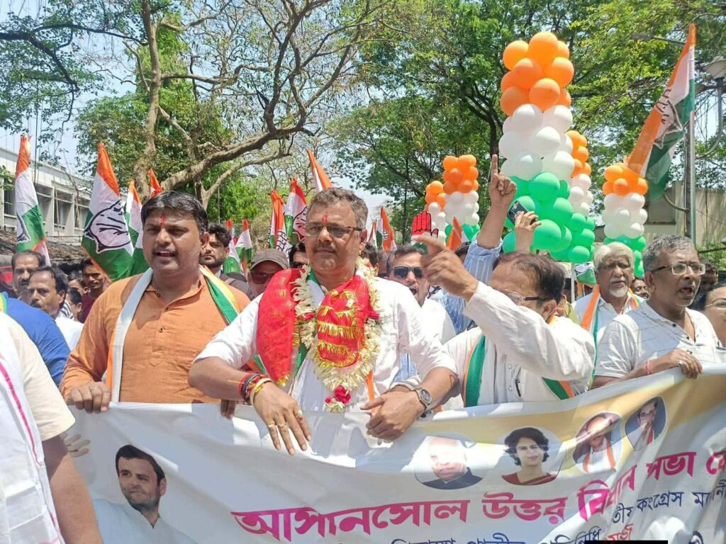 দলীয় পতাকা সহ প্রার্থীর সমর্থনে কর্মীদের স্লোগানের মধ্যে দিয়ে বিএনআর মোড় এলাকা থেকে এক বর্ণাঢ্য পদযাত্রার মাধ্যমে মহকুমা শাসকের দপ্তরে পৌঁছে আসানসোল উত্তর বিধানসভা কেন্দ্রের কংগ্রেস প্রার্থী হিসেবে নিজের মনোনয়ন পত্র জমা দিলেন প্রসেনজিৎ পুঁইতন্ডী।