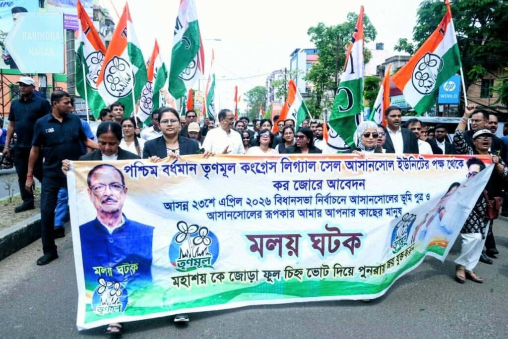 সোমবার আসন্ন বিধানসভা নির্বাচনে আসানসোল উত্তর বিধানসভা কেন্দ্রের তৃণমূল কংগ্রেসের হেভিওয়েট প্রার্থী মলয় ঘটকের সমর্থনে এক বিশাল মিছিলে পা মেলালেন আসানসোল আদালতের আইনজীবীরা। আদালত চত্বর থেকে শুরু হওয়া মিছিলে কয়েক’শ আইনজীবী এদিন কালো কোট পরেই সামিল হন। তাদের হাতে ছিল দলীয় পতাকা এবং মলয় ঘটকের ছবি সম্বলিত প্ল্যাকার্ড। মিছিল থেকে স্লোগান ওঠে, “আসানসোলের ঘরের ছেলে মলয় ঘটককে ভোট দিন। উন্নয়নের ধারা বজায় রাখতে মলয় ঘটককেই চাই।” পেশাগত পরিচয় ছাপিয়ে এদিন আইনজীবীদের এই স্বতঃস্ফূর্ত অংশগ্রহণ রাজনৈতিক মহলে বিশেষ তাৎপর্য বহন করছে।