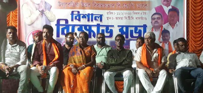 তৃণমূলের তোলা অভিযোগ ভিত্তিহীন দাবি করে বিজেপির পক্ষ থেকে বৃহস্পতিবার বিকেলে আমতা সিটিসি বাসস্ট্যান্ডে একটি পাল্টা সভা করা হয়।