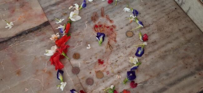 দূর্গা মন্দিরের বেদিতে দেখা গেলো মায়ের পায়ের ছাপ