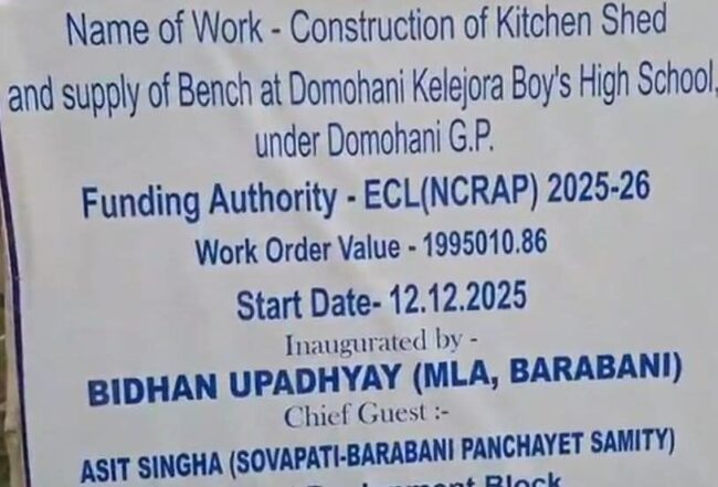 এদিন অসিত সিংহ জানান, দোমহানি গ্রাম পঞ্চায়েতের কেলেজোড়া স্কুলের মিড ডে মিলে ছোটদের মধ্যাহ্নভোজনের সেড টি একেবারেই ভগ্নপ্রায় হয়ে গেছে। যার জন্য বারাবনির বিধায়ক তথা আসানসোলের মেয়র বিধান উপাধ্যায়ের প্রচেষ্টায় ইসিএল (N C R AP) তহবিল থেকে প্রায় 19 লক্ষ 95 হাজার টাকা ব্যয় করে একটি বিল্ডিং নির্মাণ এর কাজ সহ ১০০ টি বেঞ্চ প্রদান করা হবে।যা খুব শীগ্রই সম্পন্ন হবে। তবে ঠিকাদার গোপীনাথ ব্যানার্জি এই মধ্যাহ্ন ভোজের শেড নির্মাণ করবেন। তিনি জানিয়েছেন যে তিনি নিজেও এই বিদ্যালয়ের ছাত্র ছিলেন এবং তাই এর সাথে তাঁর একটি আবেগগত সম্পর্ক রয়েছে। তিনি বলেন যে এখানে কেবল মধ্যাহ্নভোজের শেডই তৈরি করা হচ্ছে না, বরং বিদ্যালয়ের জন্য ১০০টি বেঞ্চও তৈরি করা হচ্ছে।